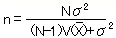 )=SE2) で求まる。 σの値(概数でよい)も必要となる。 Nが非常に大きいときは、いずれも1の式と同じになる。