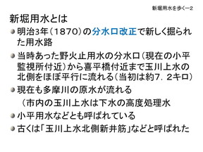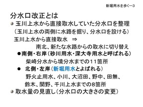 主な話題の頭出し 新堀用水の概略 分水口改正 玉川上水線路図