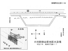 上水に入り小平監視所の所から流されております。 新堀用水の命名の仕方というのはかなり安易なもので、玉川上水や以前から有った用水 路に対して後から掘った堀なので「新堀」と、新しい堀だということで「新堀用水」と呼 ばれています。小平市内では別に「小平用水」と呼んだりしています。古い文献・文書な どでは「玉川上水北側新井筋」と書かれ、この名称が正式名称として使われております。先頭へ |